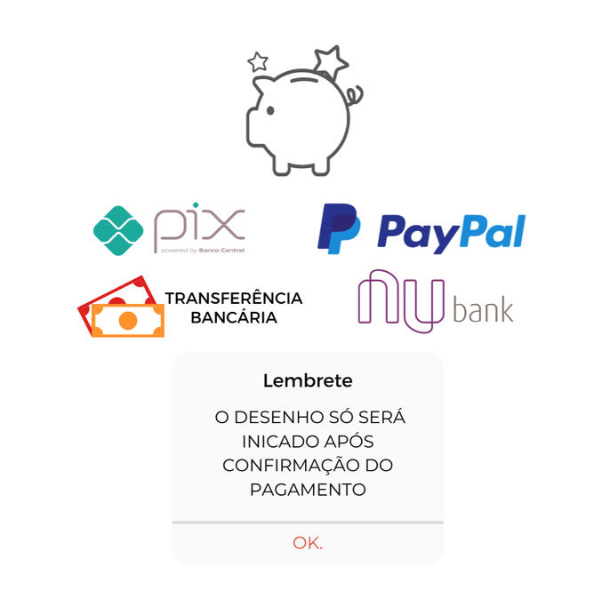 ✦ O DESENHO SÓ SERÁ INICIADO APÓS CONFIRMAÇÃO DO PAGAMENTO;